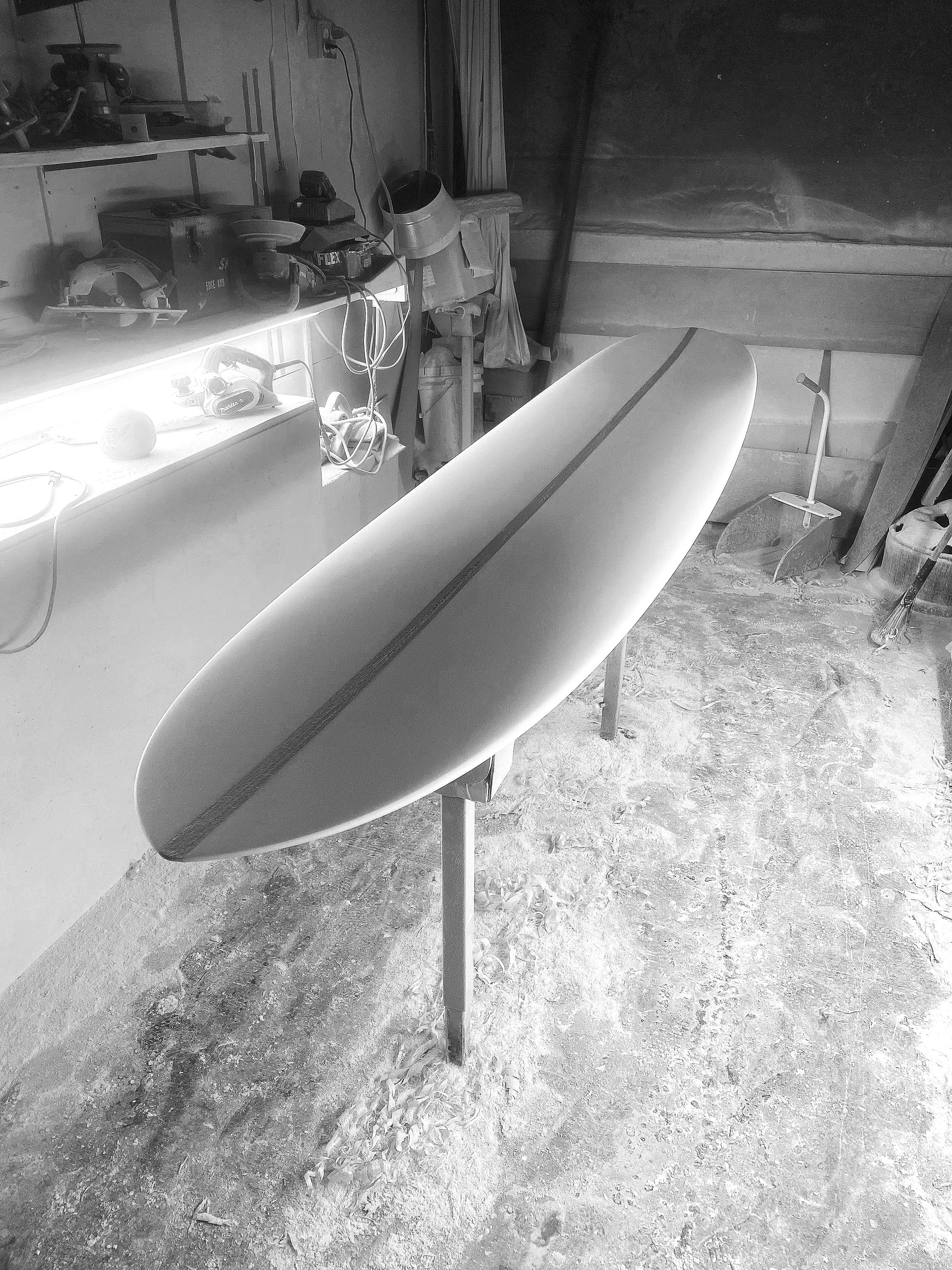 AKA “The Bobby Pin” is inspired by the old Boss nose riders designed to lock in on the nose and hold through deep sections of the wave. Bobby has a double step deck giving it plenty of volume through the mid section while offering sensitivity from the nose and tail. Blended concave through nose for extra lift and convex through the back to transition smooth in tight spots. Perfect board for the soft days at Sano or long point peelers.